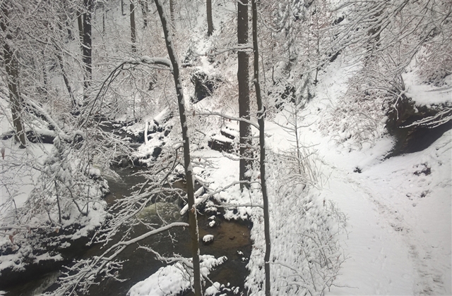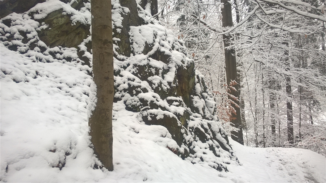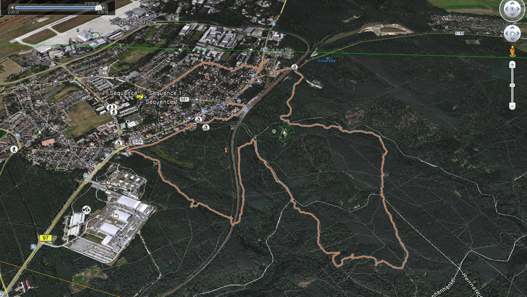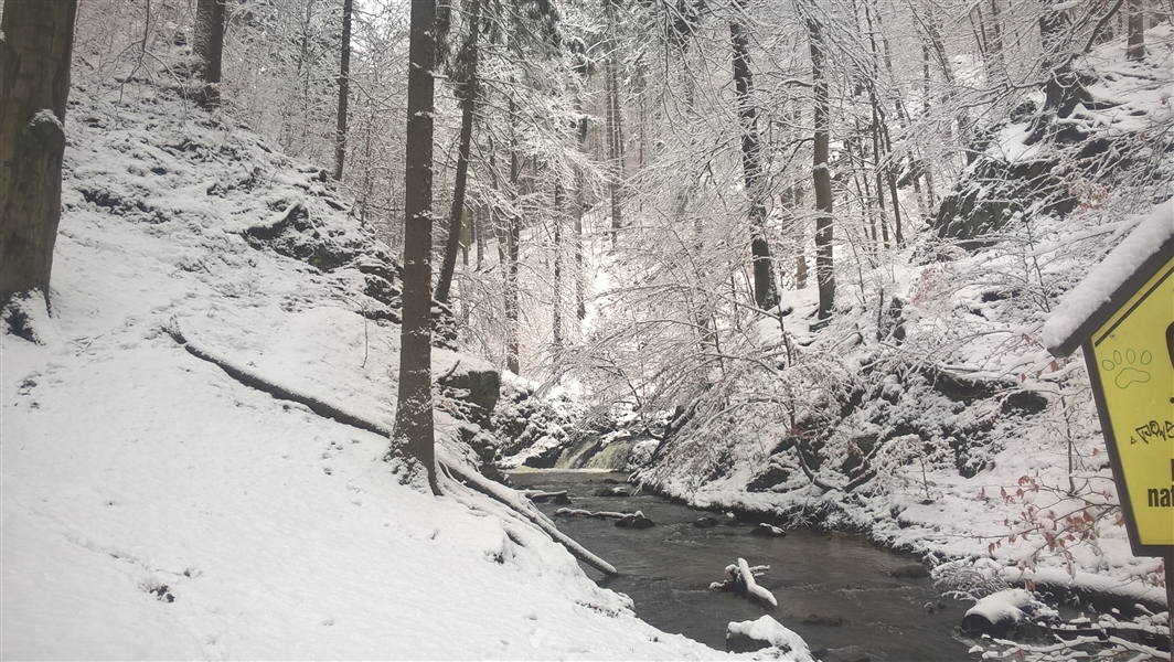 Zwei verschiedene Daten und doch fast eine identische Tour aber die Farben unterscheiden sich. Die eine im Februar und die andere Anfang März. Die Strecke beläuft sich auf circa 12 Kilometer. Die Temperatur unterschied sich trotz mit einem Zeitunterschied von einen Monat nicht, um die -1 Grad Celsius. Die erste Tour von diesen beiden lief ich mit Peter und die zweite mit Matze. An einen anderen Tag begegneten wir ein Rudel Wildschweine die einjährigen flüchteten aber die Bache startete einen Scheinangriff auf Matze und mich. Wir blieben stehen und sie brach ihren Angriff nach circa 5 Metern Lauf abrupt ab und machte den Einjährigen hinter her.
