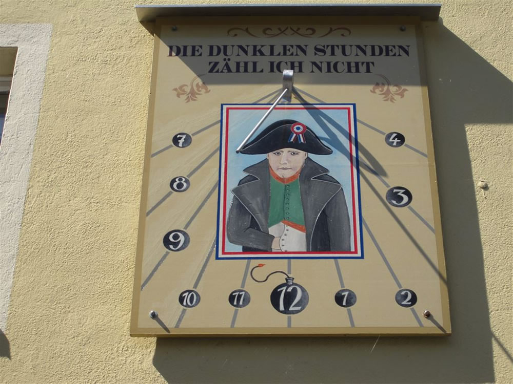 In Krippen fragten wir endlich eine Einheimische Frau nach den Sonnenuhren. Ihre Antwort "Hier gibt es viele zum Beispiel dort drüben am Getränke Markt." oder war es ein Einkaufsmarkt, ich weiß es nicht mehr.